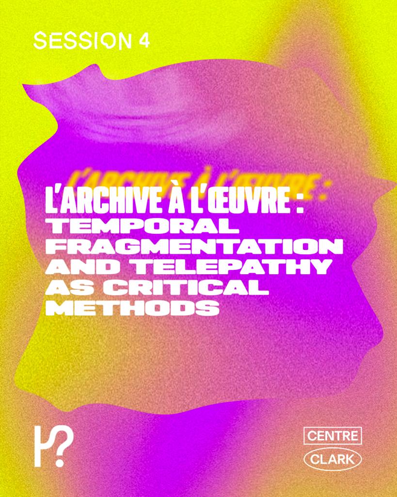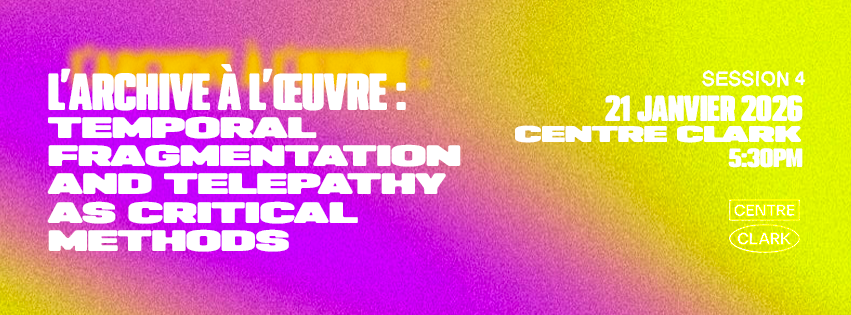 Notre quatrième conférence de la saison, L’archive à l’œuvre : Temporal Fragmentation and Telepathy as Critical Methods, aura lieu le 21 janvier au Centre Clark à 17 h 30.